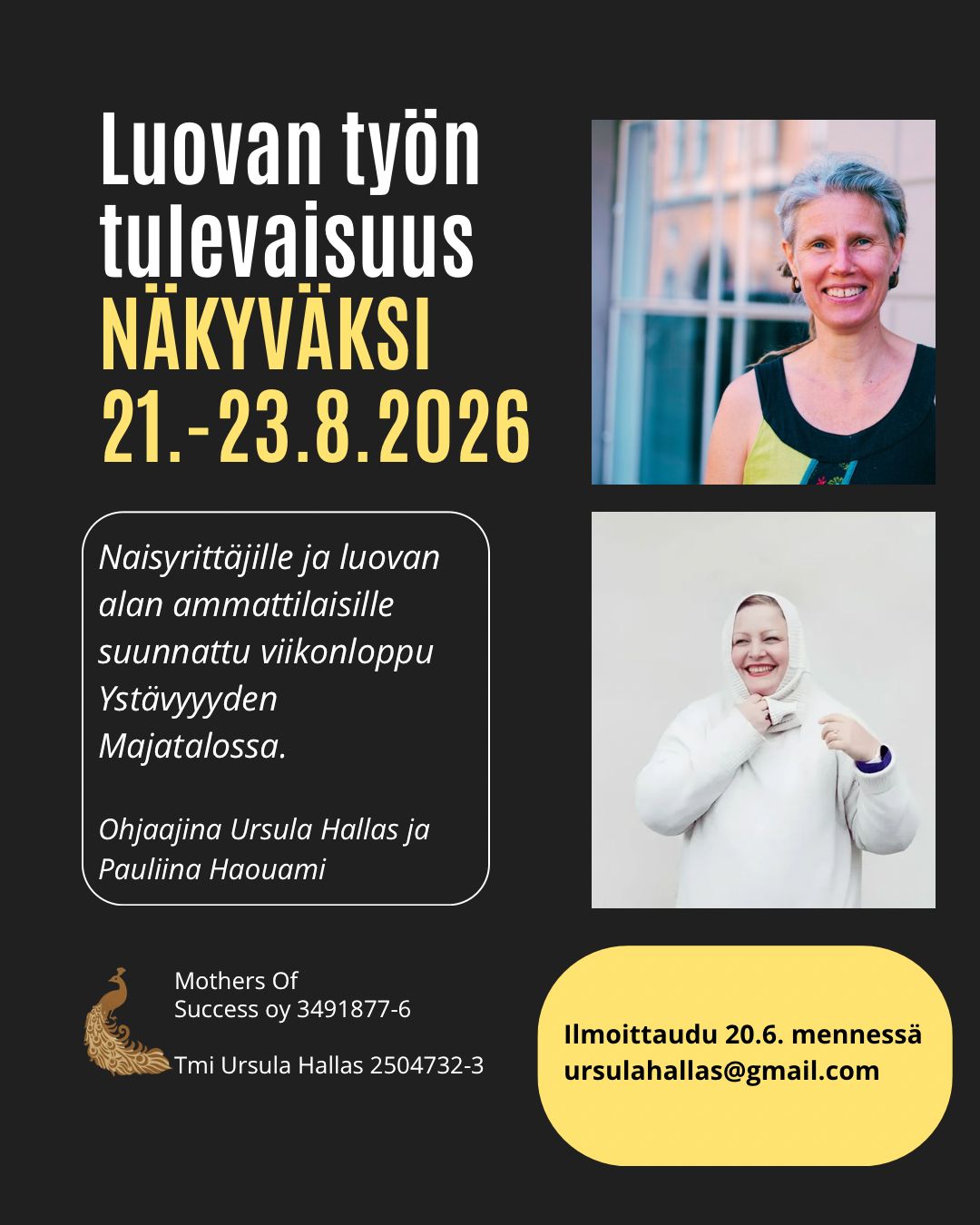 Kurssin hinta: 300€ (ALV 0%) Ilmoittautuminen: ursulahallas@gmail.com 20.6.26 mennessä